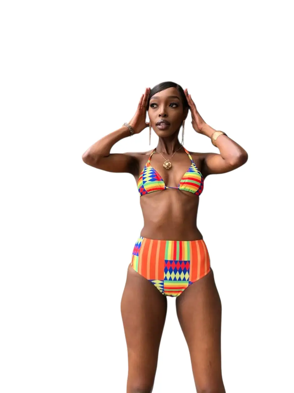 - The Maisha high-waist two piece comes with a tie up back top.